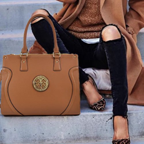 Walking the line between ladylike and luxe, our top-zip satchel showcases a structured silhouette crafted from faux leather.