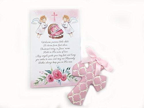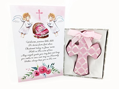 Christening Gifts For Girls Gift Set Pink Cross for Baby Girls and Baptism Prayer Card for Girls Great Baptism Gifts for Girls from Godmother