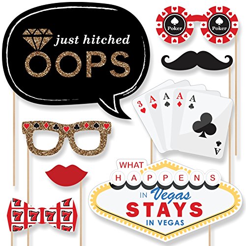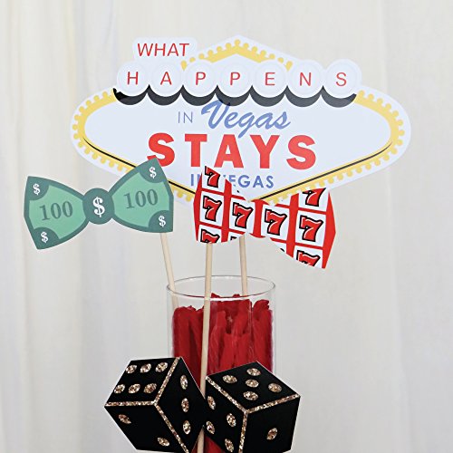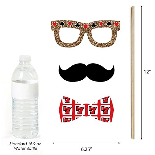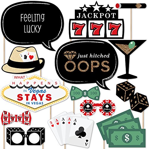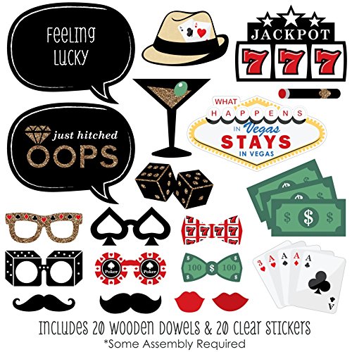 20-Piece Casino Photo Booth Props Kit INCLUDES 20 Las Vegas photo booth props, 20 wooden dowel sticks and adhesives for assembly. EASY ASSEMBLY: Simply attach the printed DIY photo booth props to the wooden dowels with included adhesive and reinforcing stickers.
