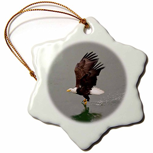 3dRose Bald Eagle takes off after catching a fish in its talon.(Haliaeetus leucocephalus).Southeast Alaska - Snowflake Ornament, Porcelain, 3-inch (orn_45607_1)