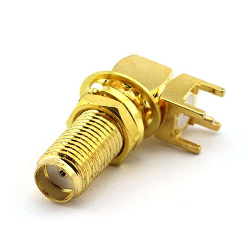 -. Feature : Type: SMA adapter PCB mount plug Right Angle Connector 23mm. / Material: Made of high quality material with good connectivity. / Function: One side is SMA female with inner bore, and the other side is PCB panel mount plug with 4 pin stand. / Applications: Suitable for Antennas, Broadcast, Radios, Wi-Fi, Telecom, Coaxial cable, LMR, Wireless LAN Devices, CCTV, Microwave Applications and Digital Communication System etc. / Package: 2pcs 23mm SMA Female PCB Panel Mount Right Angle Adapters
