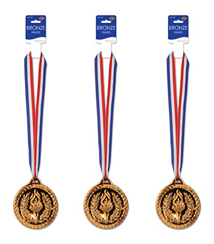 Beistle S54616AZ3 Bronze Medals 30" Ribbons, Pack of 3