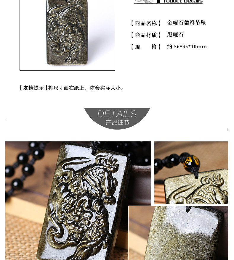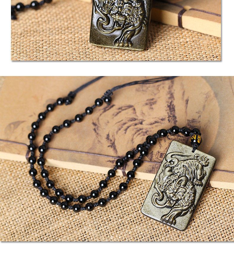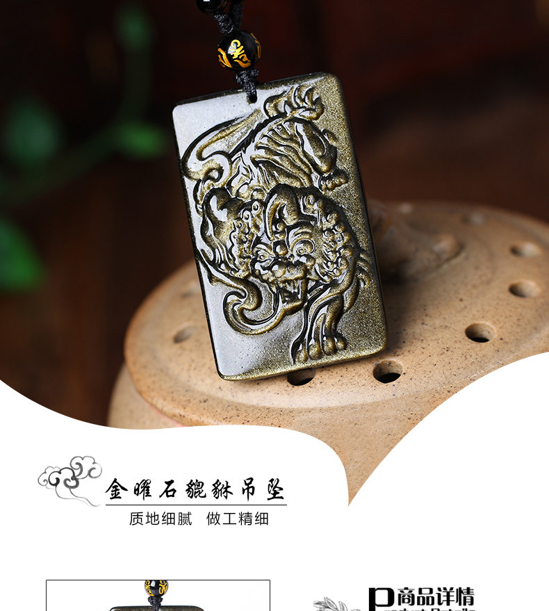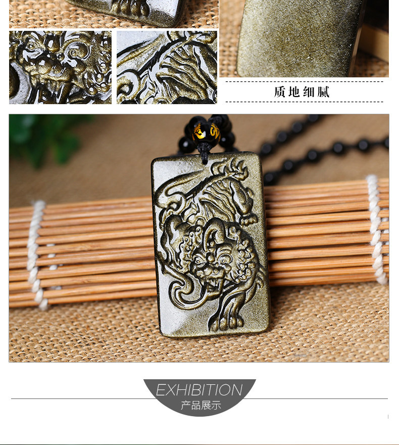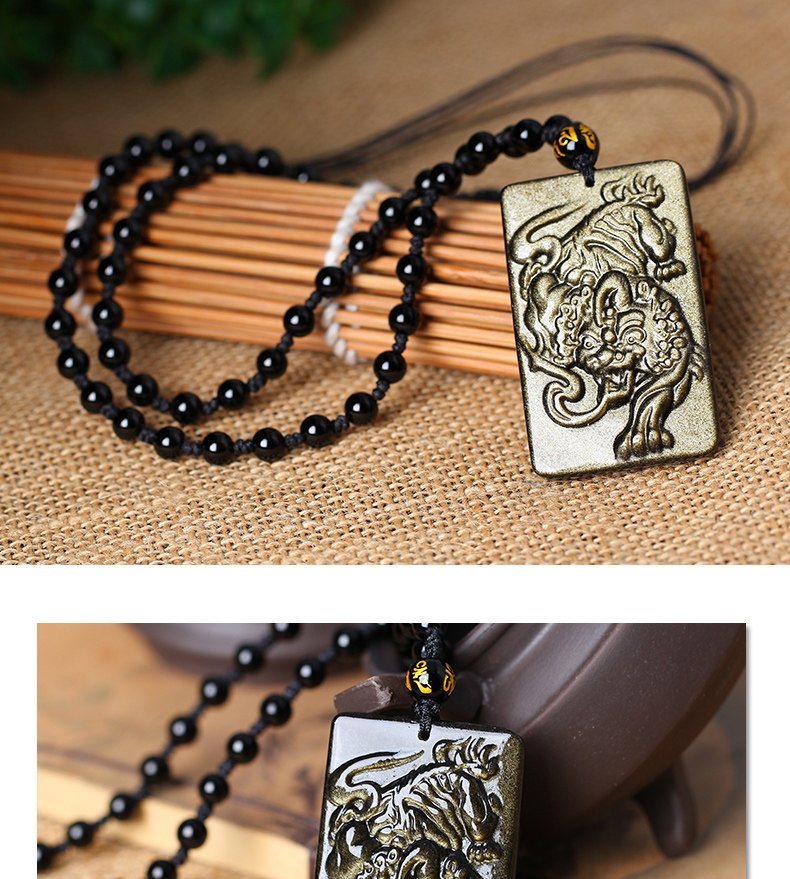 财骏盈门黑曜石吊坠属虎开运吉祥物金曜石寅化齐福吊坠
