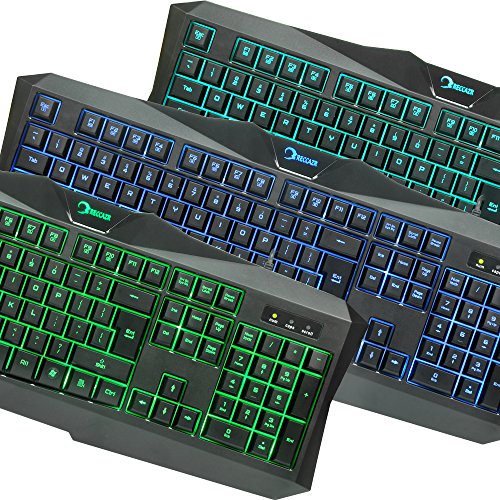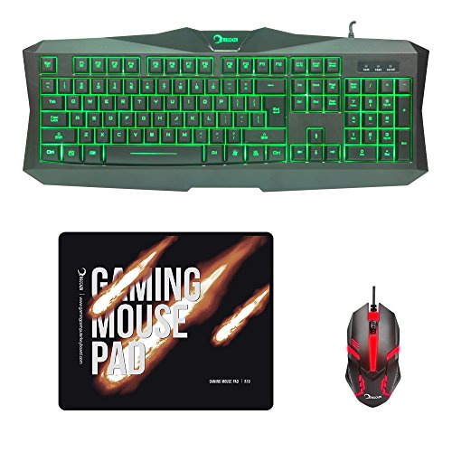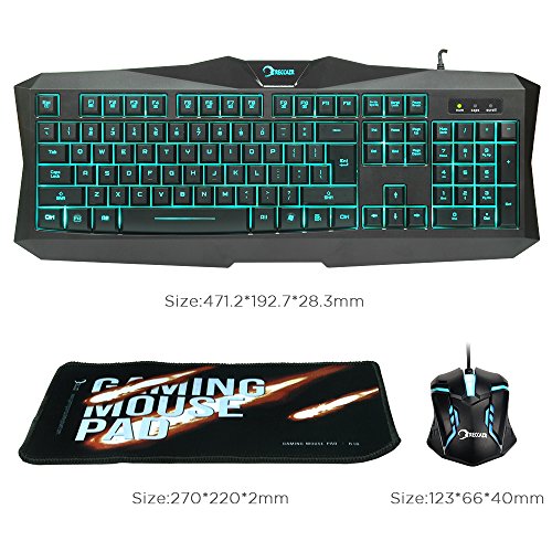 RECCAZR MC500 Gaming Keyboard LED Mouse and Mouse pad Combo 3 Color Backlit Keyboards 7 Color 1200DPI Mice 10.6"x8.8" Mouse mat Mouse Keyboard Set for PC/Laptops/Computer