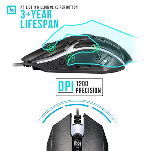 【7 Circular & Breathing LED Light mice】1200 DPI optical tracking enables responsive cursor control for precise tracking and easy text selection,7 colors LED Circular breathing lights.