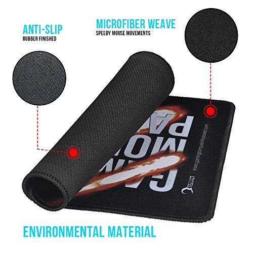 【High grade large mouse pad】10.6"x8.8"- Large surface area for an enhanced gaming experience and Competition-grade gaming surface is optimized for pixel-precise mouse control and performs with all mouse DPI settings . environmental protection cloth, smooth surface without been fold ,odorless high grip rubber base extended gaming mouse mat.