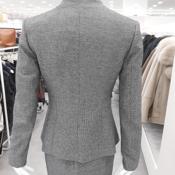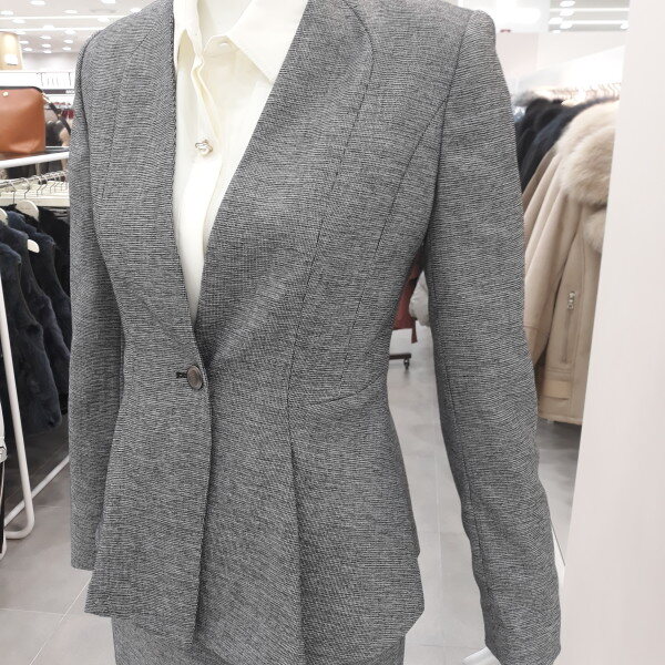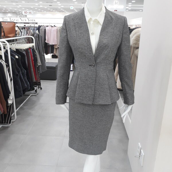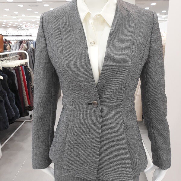 슬림 노카라 정장 자켓입니다 허리 라인이 들어가서 날씬하게 보이며 여성스럽고 단아합니다
