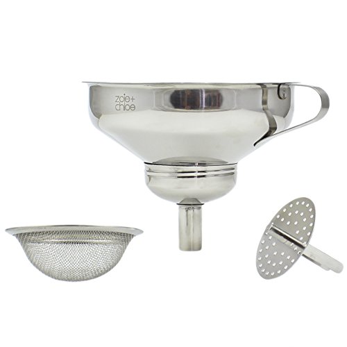 Product Description Zoie Chloe 3-in-1 Stainless Steel Funnel is unique in the market. All other funnels are either wide mouth or narrow mouth. To have both you need to buy two sets of funnels, which wastes money and space. Zoie Chloe's funnel combines two funnels in one, allowing you to use the right tool for the job. 0