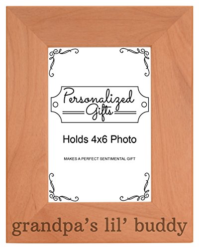 Grandpa Gift Grandpa's Lil' Buddy Grandson Natural Wood Engraved 4x6 Portrait Picture Frame Wood