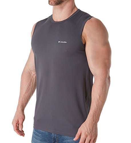 Studio : Columbia Underwear Publisher : Columbia Underwear Binding : Apparel Product Description Columbia performance mesh muscle tee fabric has very tiny spaced holes for breathability keeping you cool all day long. High durability fabric enhances air flow with no pilling. Light grey Columbia logo on chest. Compass blue signature bartack at hem. Omni-wick advanced evaporation pulls moisture away from the body and enables perspiration to evaporate quickly. Flat anti-chafing stitches. Tag free. Antimicrobial treatment on fabric. 0