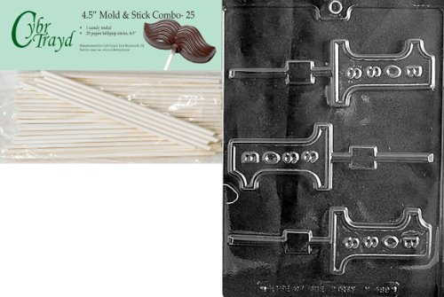 Cybrtrayd 45St25-M189 No.1 Boss Lolly Miscellaneous Chocolate Candy Mold with 25-Pack 4.5-Inch Lollipop Sticks