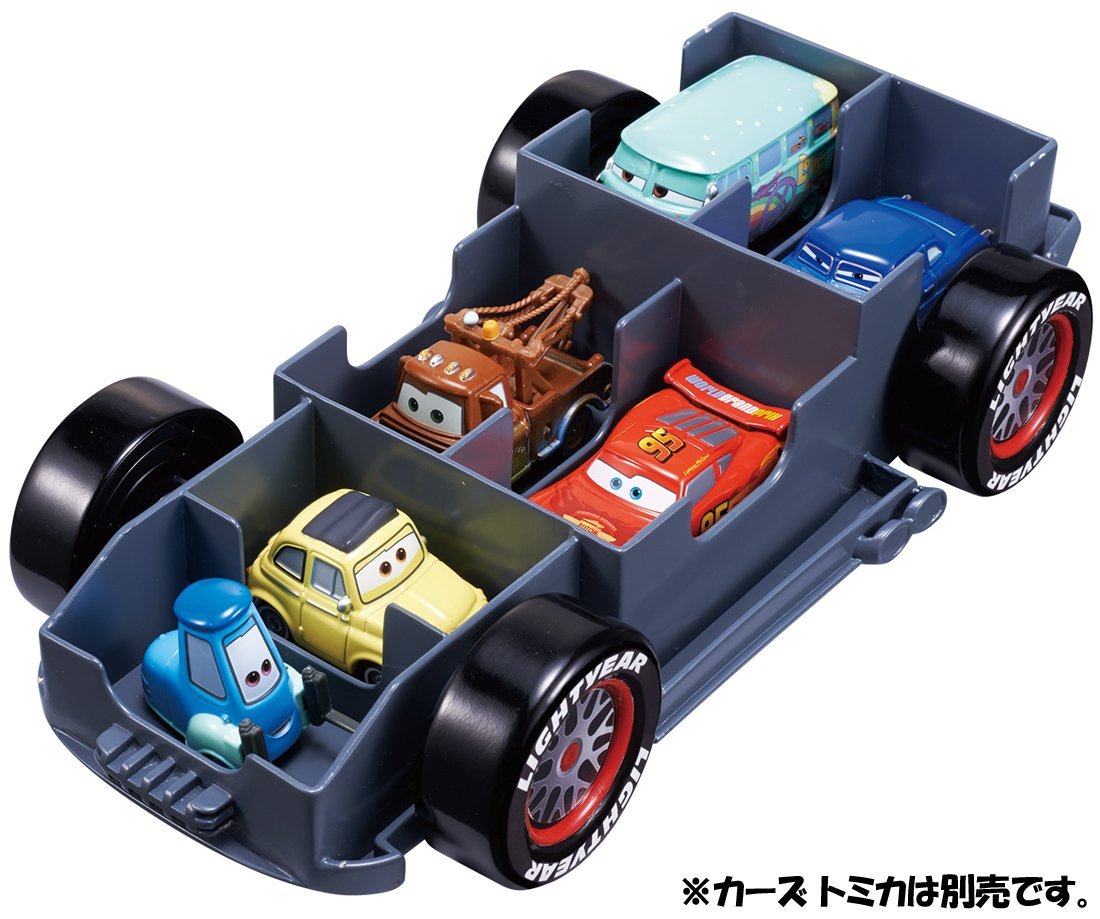 It is also possible to store up to six cars tomica (normal size × 4 units · small size × 2 units) in the chassis section when the body is removed.