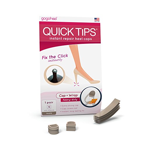 -. Brand : GoGo Heel -. Department : womens -. Feature : Long-lasting instant repair for damaged heel tips with exposed metal nail / Heavy-duty heel cap covers exposed metal & stops the clicking / Caps lock onto your heel with self-fusing wrap for extra secure fit / Instantly restores and protects your shoe heel / For temporary repair, try our QUICK TIPS LITE (slip-on heel caps) -. ProductGroup : Shoes -. ProductTypeName : SHOE_ACCESSORY -. Title : QUICK TIPS®, Instant Heel Tip Replacement Caps - 1 Pair