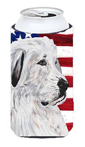 Great Pyrenees with American Flag USA Tall Boy Beverage Insulator Hugger SC9642TBC