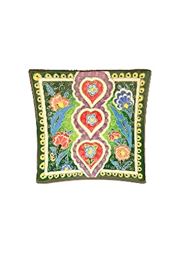 Handmade Turkish Traditional Ceramic Square Plate 5 1/2" (Green Floral-Heart)
