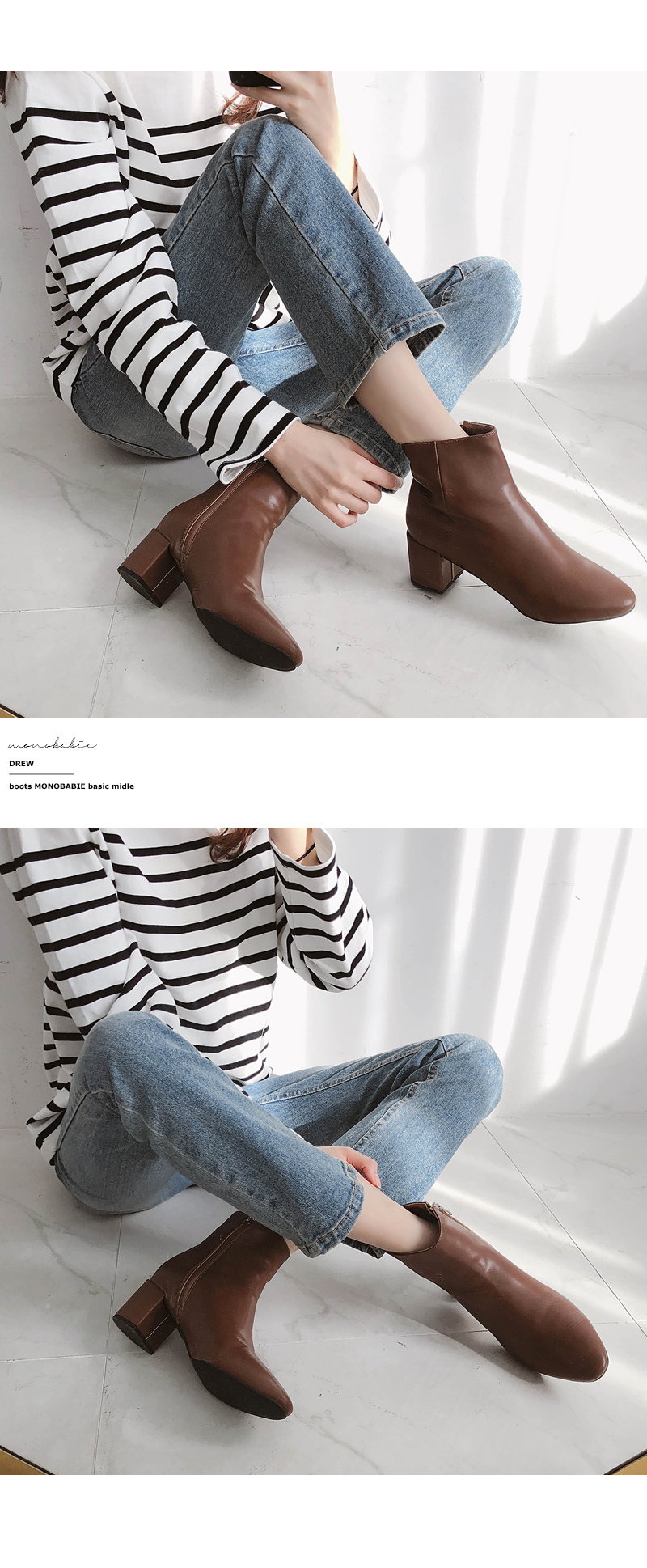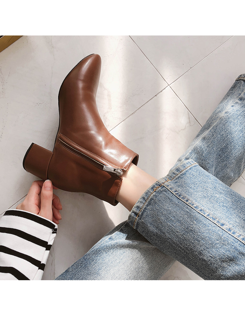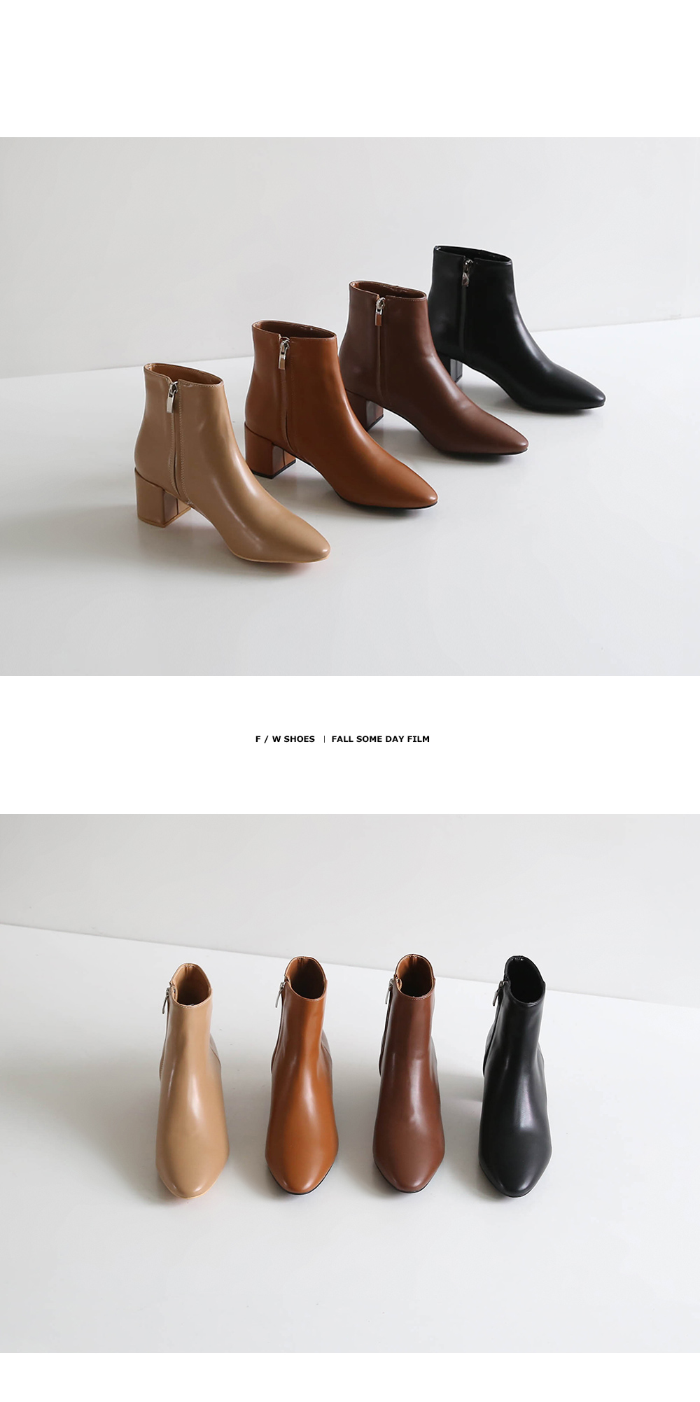베이직한 살짝 라운드진 라인의 앵클부츠입니다. 가을시즌에 어우러지는 브라운 컬러톤으로 구성되어 부담없이 무드있게 착화 가능합니다.