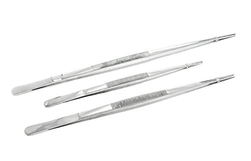 3-Piece Tweezer Set with Serrated Tips, Lengths: 12”, 10”, 8”