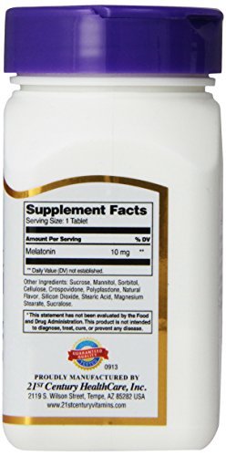 -. Binding : Health and Beauty -. Feature : Melatonin 10mg -. Label : 21st Century -. Manufacturer : 21st Century -. ProductGroup : Health and Beauty -. ProductTypeName : HEALTH_PERSONAL_CARE -. Publisher : 21st Century -. Studio : 21st Century -. Title : 21st Century Melatonin Quick Dissolve Tablets, Cherry, 10 mg, 120 Count (Pack of 3)