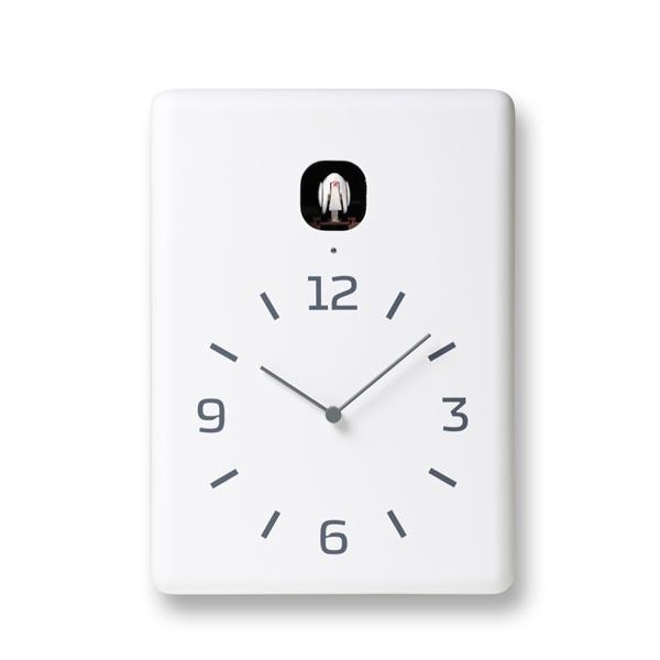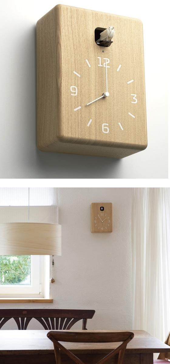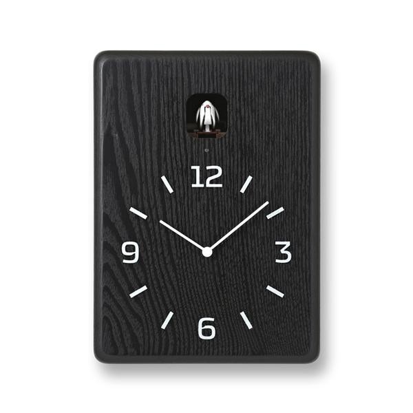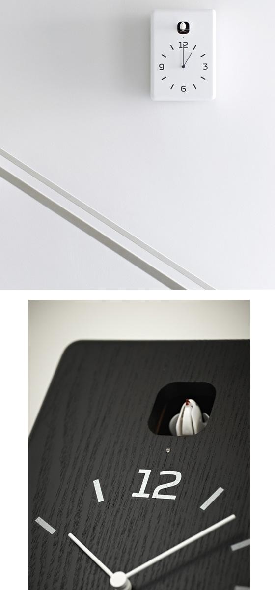 | 小川のせせらぎの音と共に、愛らしいカッコーの鳴き声で時を告げる時計です。シンプルな巣箱を模した形状は、壁掛けはもちろん、置時計としても使えます。無垢のタモ材の木目を生かしたナチュラル・ブラウン、純白に仕上げたモダンなホワイト、木の木目を残した高級感のあるブラックの4種類からお選び頂けます。ライトセンサー機能付きで、就寝時など消灯時には小鳥もお休みするので安心です。 |