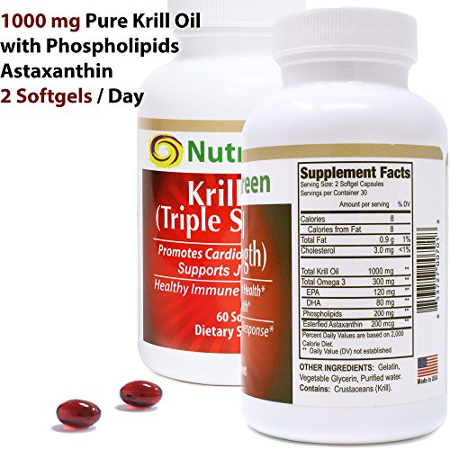 -. Title : NutraGreen Antarctic Krill Oil 1000mg with Astaxanthin/Omega-3/Phospholipids Suports Heart, Joint and Immune Health, 60 Softgels | No Aftertaste Or Burps