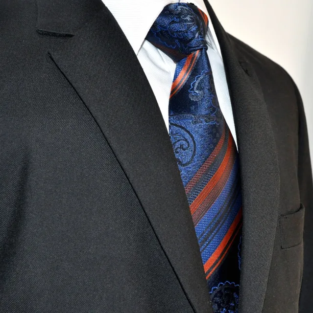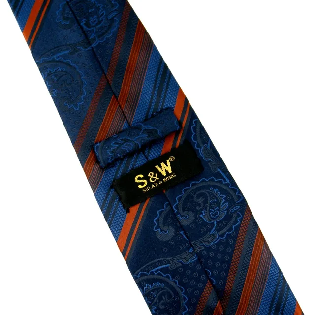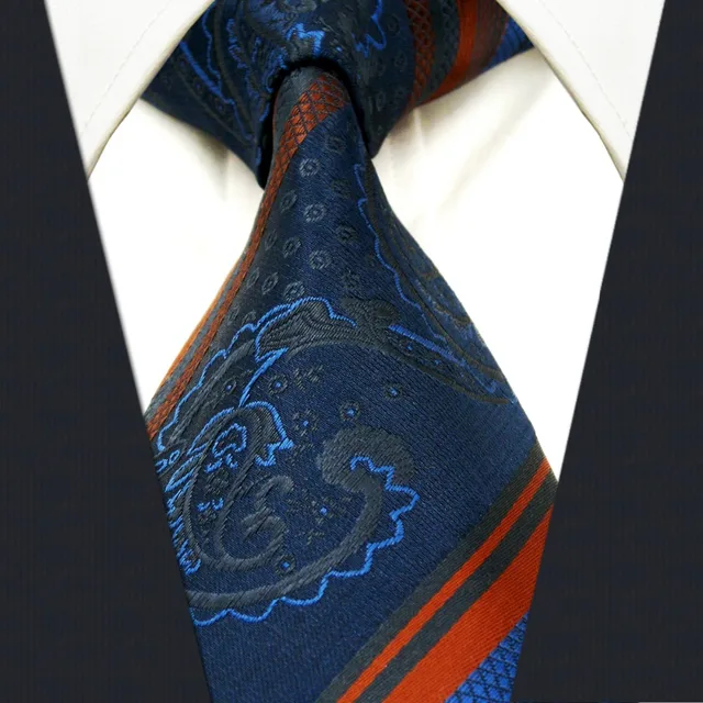 | [해외]Y31 네이비 비스크 스트라이프 페이즐리 실크 패션 브랜드 새로운 여분의 긴 사이즈 남성 넥타이 넥타이 손수건 |