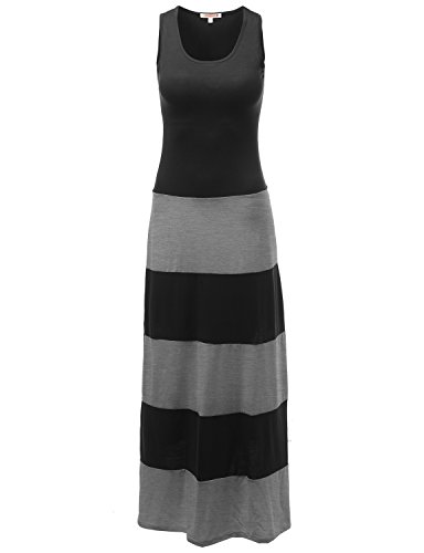 Awesome21 Stripe Colorblock Sleeveless Tank Maxi Dresses Gray Size XL