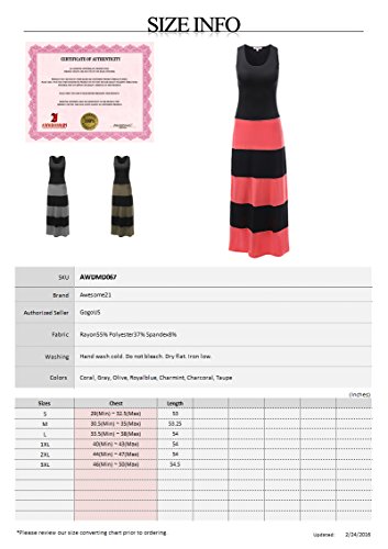 Sleeveless stripe maxi dress. Hand wash cold. Do not bleach. Dry flat. Iron low. Slim fit. *Please check our size chart. Two tone color contrast design. AWDMD067-GRAY-XL Brand : Awesome21 EAN : 0887287106324 Product Dimensions(LxWxH) : 27x23x3cm ; 181 g Package Dimensions(LxWxH) : 22x13x3cm ; 181 g