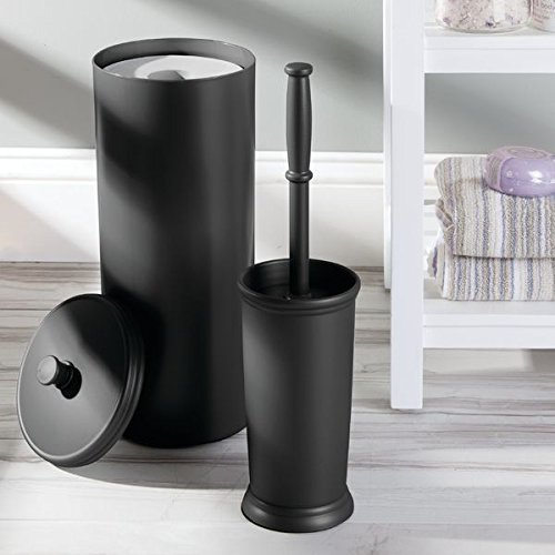 mDesign Toilet Paper Roll Holder, Wastebasket Trash Can, Bowl Brush with Holder for Bathroom Storage - Set of 3, Black
