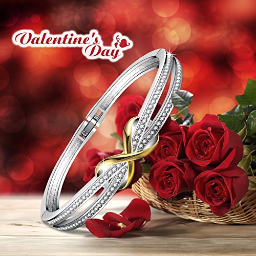 Angelady"Forever and Ever"Infinity Bangle Bracelet for Women with AAA Cubic Zirconia , Women's Birthday Anniversary Gift Company Introduction ANGELADY provides jewelry and fashion clothes with original design for girls and ladies. We're providing ideas that help every woman to be as elegant as an angel lady.