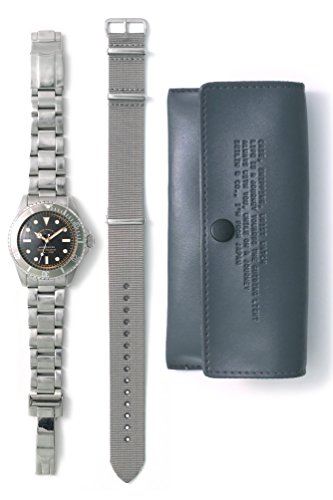 다이버타입의 제3 탄「GRY FAD(그레이 회 이 드)」서는 일본제의 자동 감기 무브먼트를 탑재했습니다.그 이름과 같이,햇볕에 그레이가 되었 쫓지 말라 베젤의 표현,본체 케이스 스테인레스 벨트는 aging 가공을 해 여러 해 사용했던 바와 같은 질감을 재현 하고 있습니다.그레이에 통일한 나일론 벨트 오리지날 파우치,벨트 교환용의 공구가 부속합니다.낭비인 부분을 털어내고, 버젼 업 한 이 모델을 확인해 주십시오./10기압 방수/팔 주위(최대) 약19.5cm