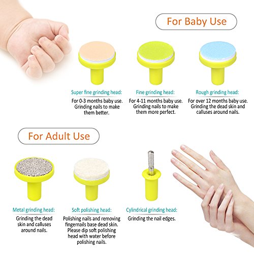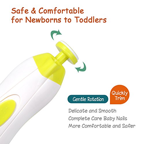 This Baby electric trimmer comes with Six different file textures for each stage of baby's development and it comes with a handy storage case. Our multipurpose nail kit helps sand, clip and polish fingernails and toenails in seconds using safe, effective sand paper that's soft on cuticles and nail beds.