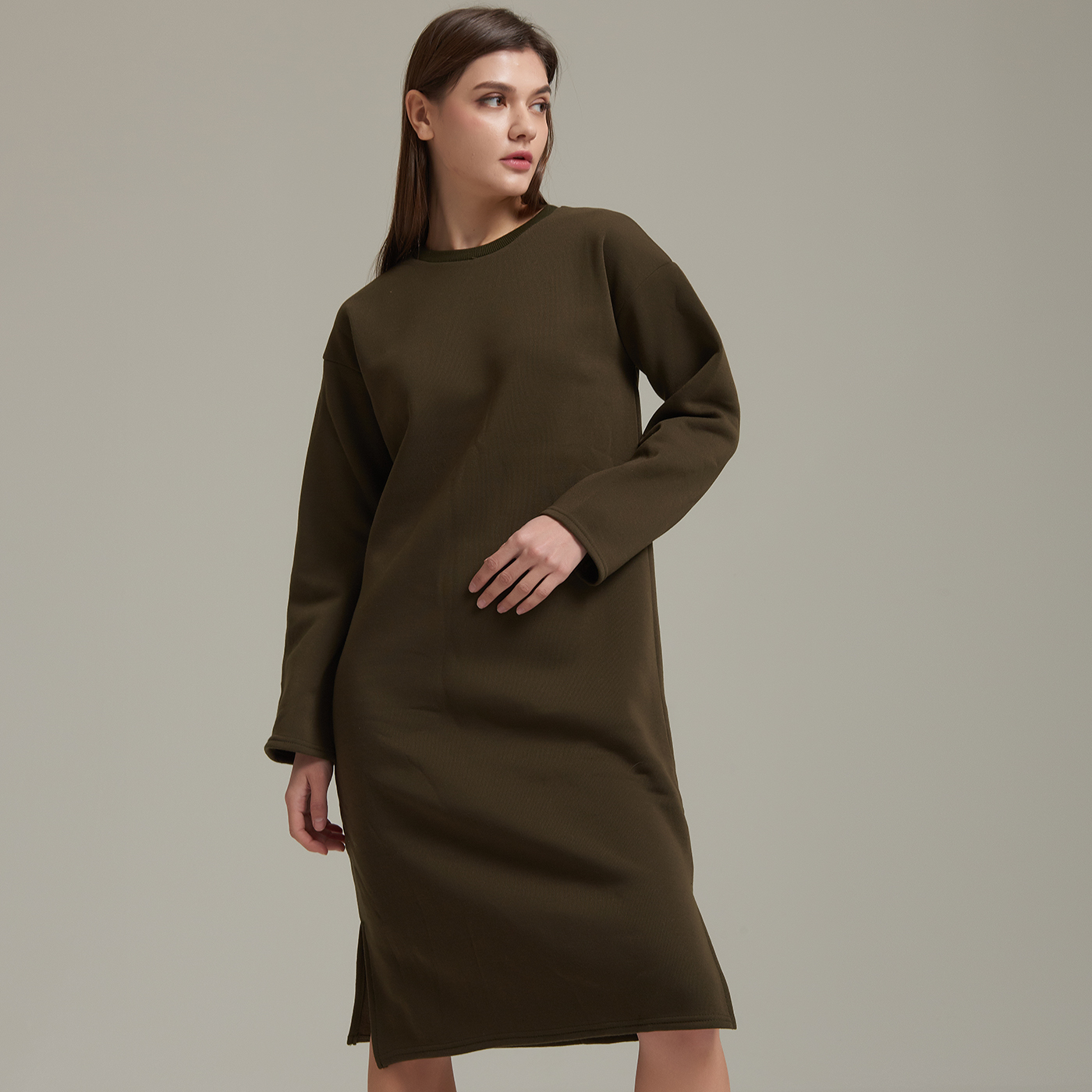 따뜻한 기모가 들어있는 시크한 디자인의 롱 원피스입니다.