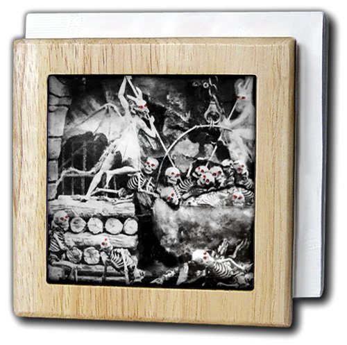 3dRose nh_240581_1 "Satanville vintage Stereoview Skeletons Demons Devil 1800S ghouls Hell" Tile Napkin Holder, 6", Natural