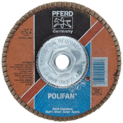 PFERD Polifan PSF Abrasive Flap Disc, Type 27, Threaded Hole, Phenolic Resin Backing, Zirconia Alumina