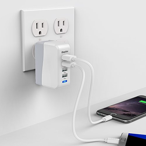 Perfect for Travel No more hassle of carrying lots of clumsy adapters for everything, one light-weight, portable EasyAcc Quad-Port Charger is all you need.