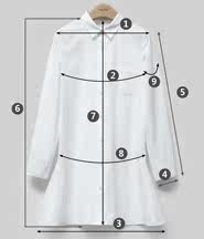 | 尺码 | ①肩宽 | ②胸围 | ③下摆围 | ④袖口围 | ⑤袖长 | ⑥前衣长 | ⑦后中长 | ⑧腰围 | ⑨上臂围 | ||