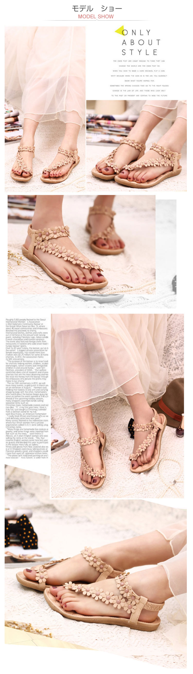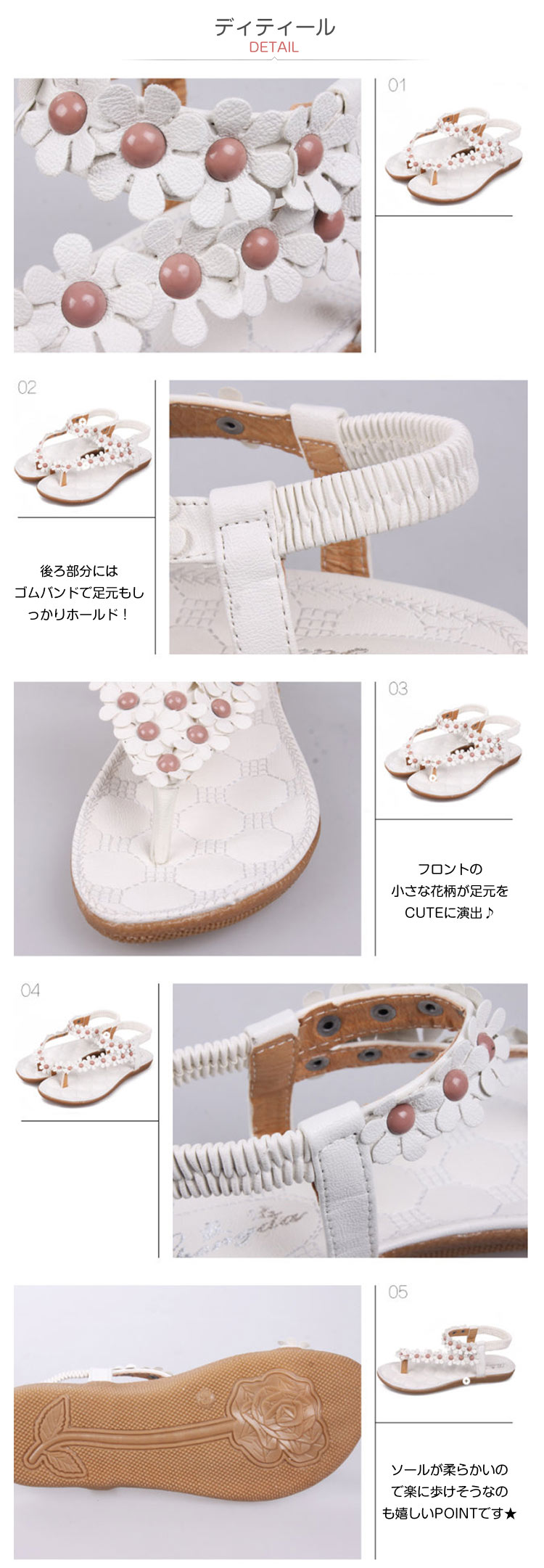 | ペタンコサンダルでもかわいさ満開!フロントの小さな花柄が足元をCUTEに演出?後ろ部分にはゴムバンドで足元もしっかりホールド!クッション入りの柔らかソールで、ふかふかな履き心地も◎春から夏まで楽しめるカラバリ展開★こんなサンダル履いて色んな所に出かけちゃおう☆ | |