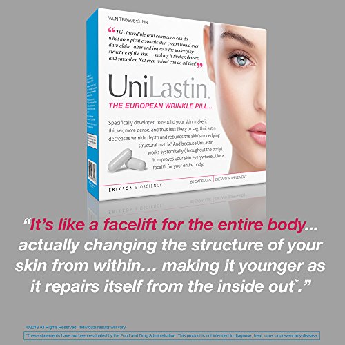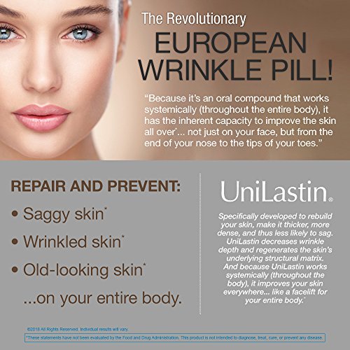 What if someone told you that you could take a simple pill and experience younger, more vibrant-looking skin? Rather than just working on the top layers of your skin, UniLastin is an oral compound that works systemically and has the inherent capacity to improve the skin's architecture all over your body ? not just on your face! Although topical lotions and potions work on the outer layers of your skin, that's all they can affect. UNILASTIN can do what no topical cosmetic skin cream would ever dare claim to do ? alter and improve the underlying structure of your skin. It actually rebuilds, repairs, and regenerates new skin from the inside out.* We're taking about actually rebuilding the skin's cellular substructure with a pill... making the skin thicker and more cohesive, and even decreasing the depth, width, and length of wrinkles. But most importantly, increasing skin density.* WHY IS IMPROVED SKIN DENSITY SUCH A BIG DEAL? Everyone knows that as we age, our skin gets thinner and looser (that's why it wrinkles and sags more easily). But a major part of that problem is reduced skin density. The less dense your skin is, the more easily it wrinkles and sags. The denser your skin is, the better it can resist damage from things like UV rays and pollution, and the less likely it is to wrinkle and sag. This amino acid-based nutrient complex was developed using a patented extraction process, and because it works systemically (throughout the entire body), it not only improves the skin on your face, it also has the inherent capacity to improve the delicate skin of the decollete, crepey arms, saggy leg skin, loose abdominal skin... even buttock sag and elbow wrinkles. It's sort of like a facelift for the entire body... actually changing the structure of your skin from within... making it younger as it repairs itself from the inside out!* 0 |