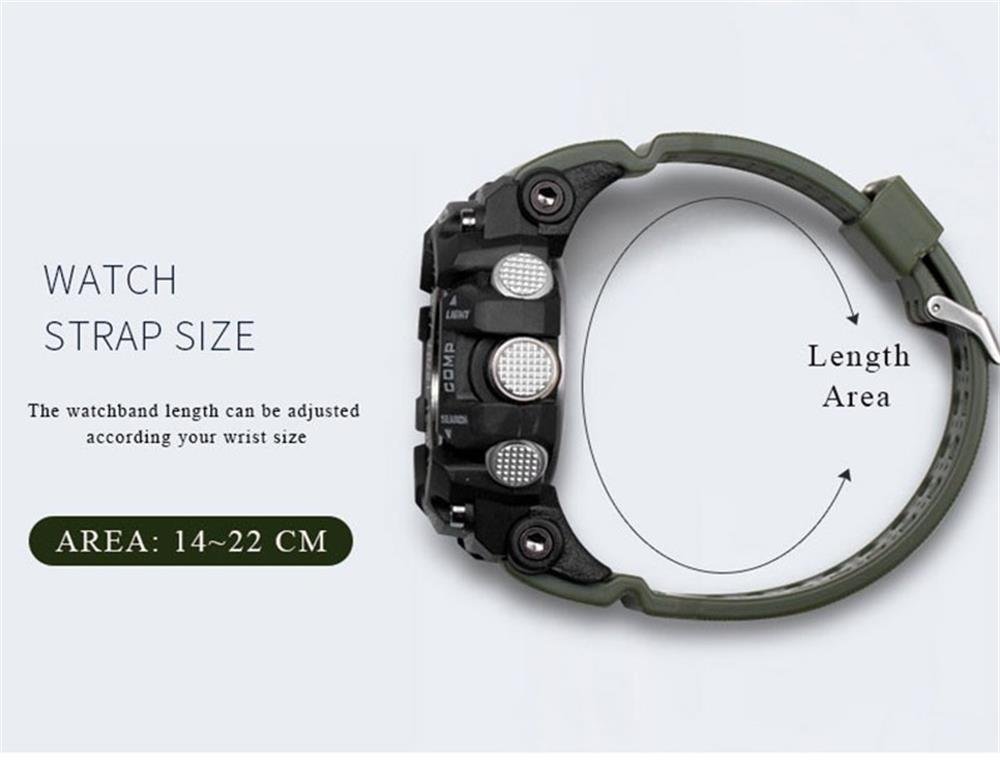 Adopting an electronic movement with analog and digital, the impact resistance is strong, and the reinforced resin band design is ergonomic and comfortable wearing comfort.