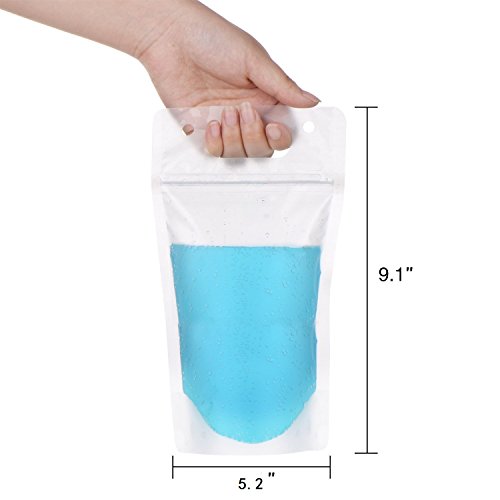 50 Pack Drink Bags Stand up Reclosable Zipper Drinking Pouches Bags Hand-held Drinking Bags with Plastic Straw, 5.1 by 9.1 Inches 8mil