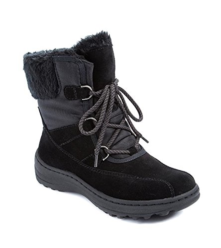 Product DescriptionThe BareTraps aero is a water resistant suede leather cold weather bootie.? it features warm shearling fabric linings for softness and comfort, and a lace up detail for easy adjustments.?0