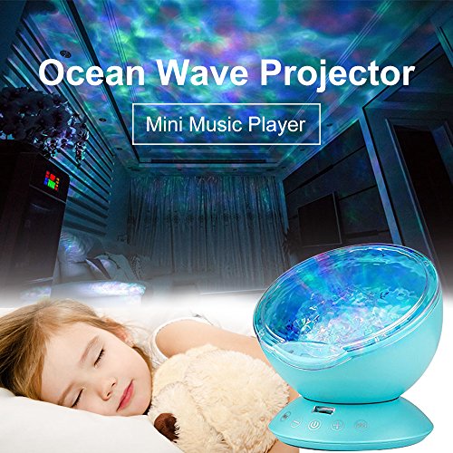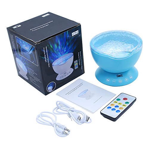 Dadiii Ocean Wave Projector Night Light with Remote Control, Built-in Mini Music Player, Great Christmas Gift for Kids Adults (12 LED, 7 Colors Light Modes)