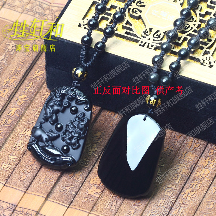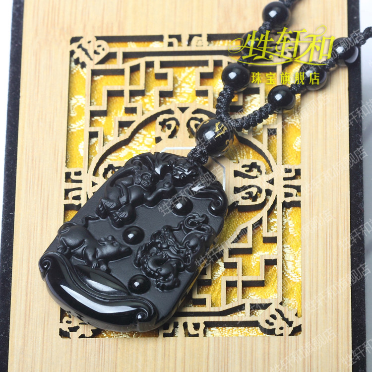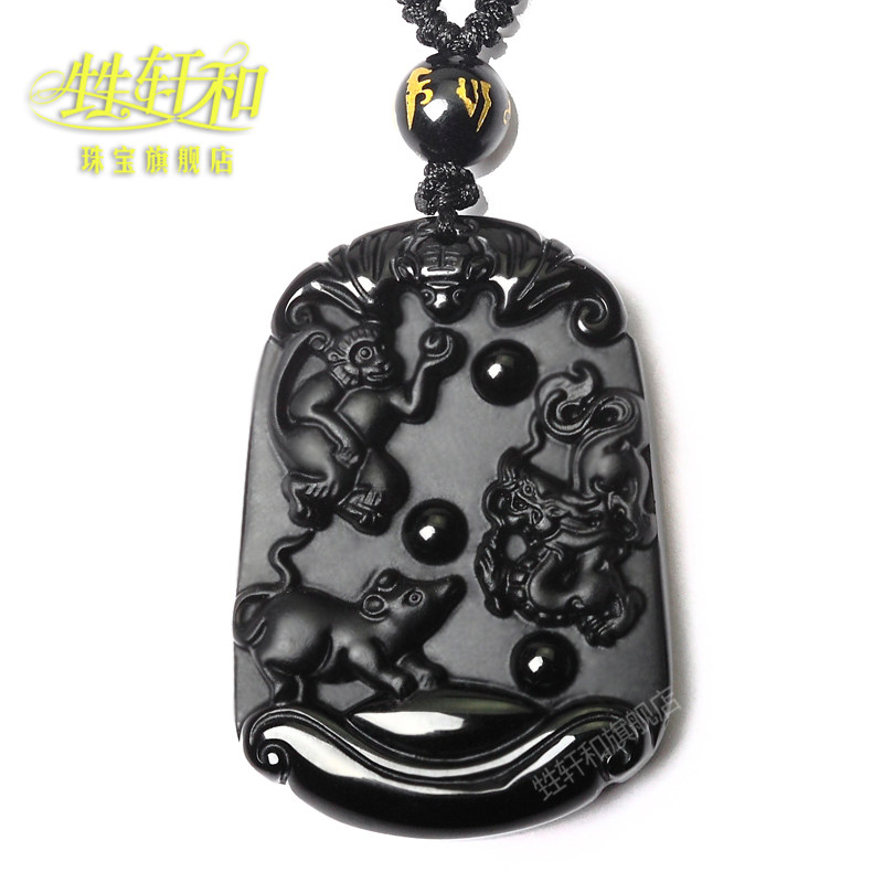 开光生肖吉祥物属猴鼠龙黑曜石申子辰三合保岁贵人吊坠