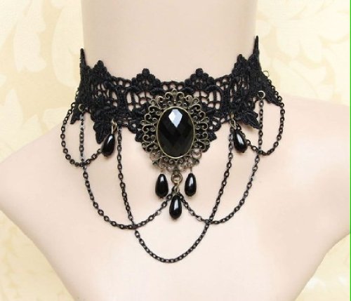 -. Title : アンティーク 黒 宝石 レース チョーカー ゴスロリ 姫系 ネックレス 【貿易商】