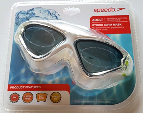 -. Feature : Latex Free Adult Hybrid Swim Mask for Recreational Swimmers ages 15 years and up / Protects Eyes from the sun's harmful UVA and UVB rays / Lenses Resist Fogging for clear underwater vision / Speed Fit frame goggle straps are easy to adjust for personal size