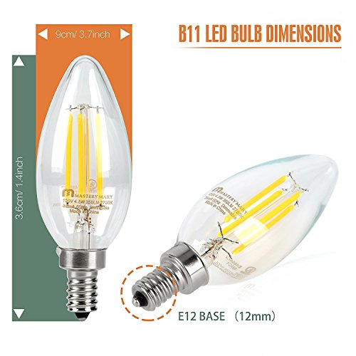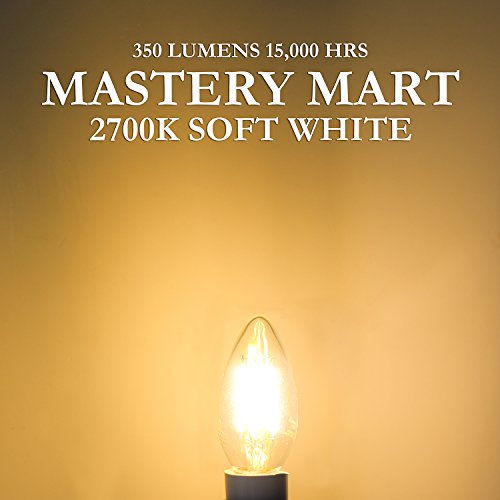 Candelabra Led Filament Bulbs, 4.5W[40W Equivalent], Crystal Glass, Dimmable, Chandelier B11 Bulb Decorative Candle, E12 Base, 2700K Soft White, 350 Lumens, by Mastery Mart (Pack of 10)