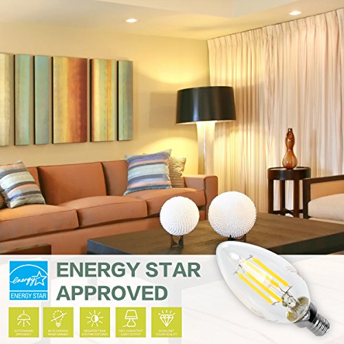 - ➤ GREAT SAVINGS WITH SAME BRIGHTNESS – Save up to 88% energy and your lighting bill by replacing 40W with 4.5 W. Same brightness for chandeliers and sconces but costs only 11% of your old light bulbs. Rated for at least 11 years of use for 3-5 hours use per day.