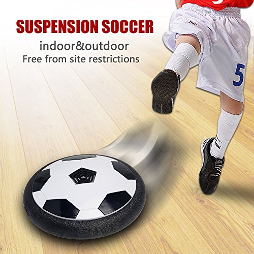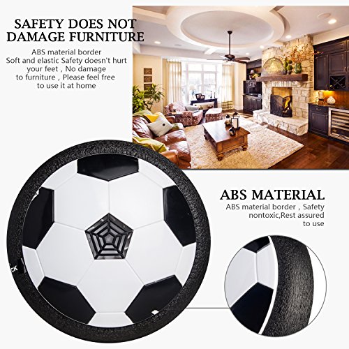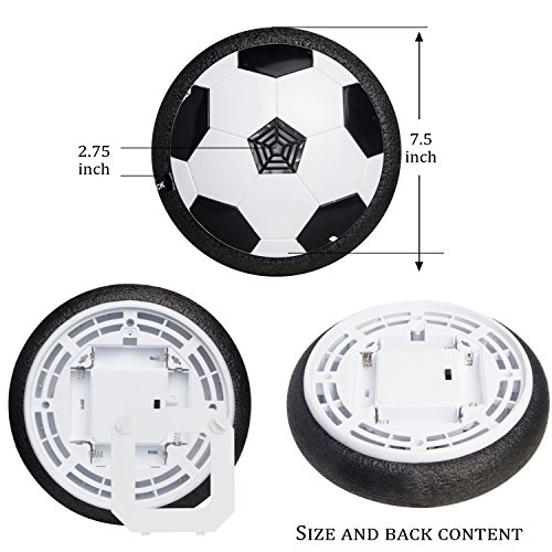 Can I use it outside? Technically, it's possible. However, we don't recommend it. The Air Power Soccer Disc is designed primarily for indoor play. Because it hovers less than a centimeter off the ground, it requires a very level playing surface which can be difficult to find outdoors. Will the air power soccer disk break easily? No. The foam band on the air power soccer disk is half an inch thick and extremely sturdy. It won't damage furniture and bounces harmlessly off walls. You would have to intentionally try to harm the air power soccer disk. This sucker is tough. What is "low pile" carpet? Without getting into the technical differences of carpet (snooze city), suffice it to say that the air power soccer disk will only work on extremely short carpet. Shaggy carpets will not work. Low pile carpet is what you'd find in high traffic areas such as offices and hotel lobbies. If you can press your finger in the carpet and see a depression, the air power soccer disk probably won't work. Product detail Requires 4 x AA batteries (not included) Dimensions: 7.25" diameter x 2.3" height Hovers on most smooth surfaces Requires 4 x AA batteries (not included)
