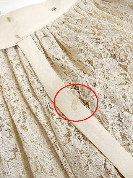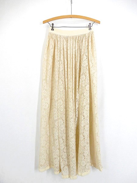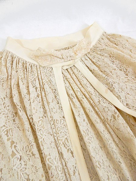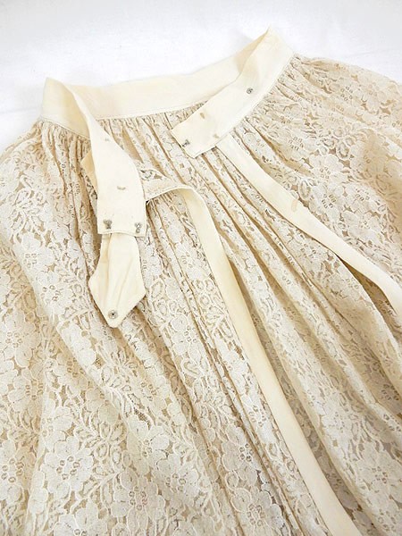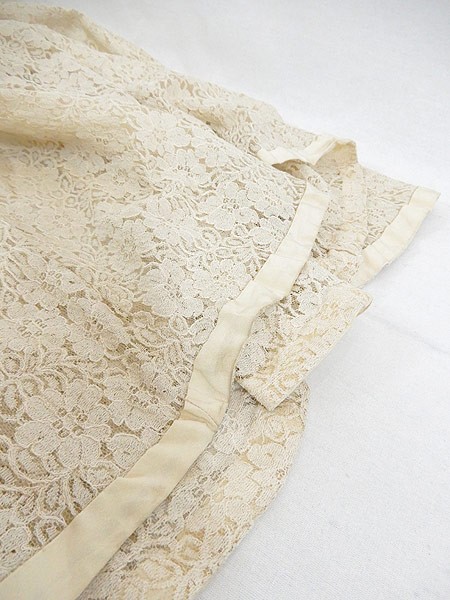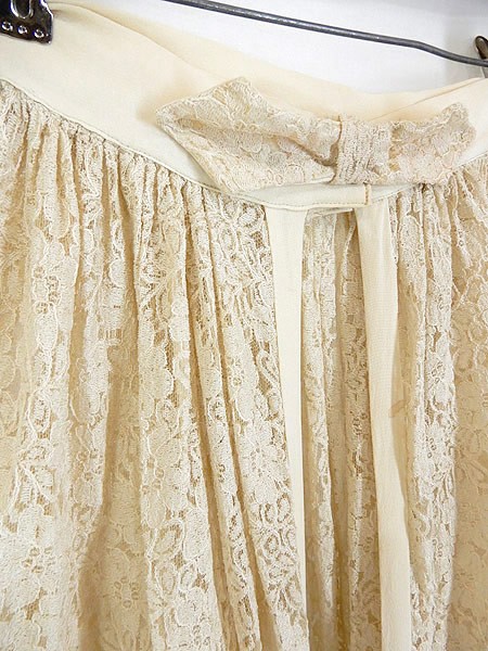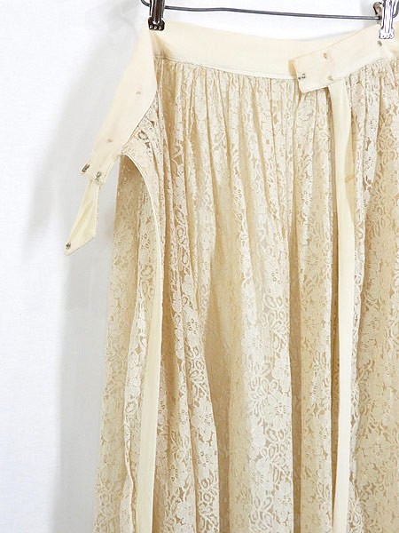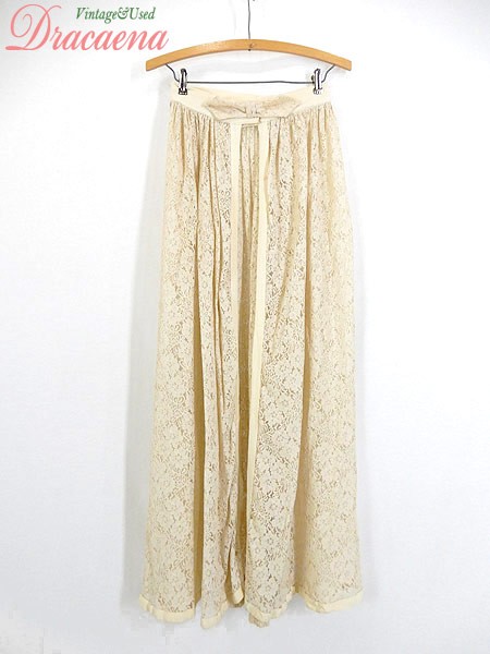 Ladies ブランド カラーオフホワイト メール便不可 コンディション★★ 素材表記はありませんが、コットン・レーヨンかと思われます。 表記サイズ記載なし スタッフコメントフロントはフックとスナップボタンとなっています。 パンツや、スカートの上に重ね履きにおススメです。 ※全体的に年代経過による黄ばみがあります。 実寸サイズ 着丈 104 cm ウエスト 24 インチ( 62 cm) ※ウエスト・ヒップ以外は平置き採寸