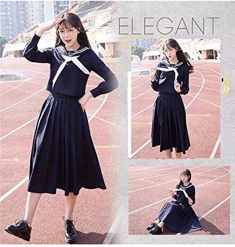 -. Title : 【ノーブランド品】セーラー服 制服 女子高生 コスプレ衣装 大人用 プリーツスカート 上下セット コスチューム ブレザー 衣装 紺 清純派セーラー服 長袖セーラー服 ひざ下ドレス 膝下丈 女子高生 濃紺